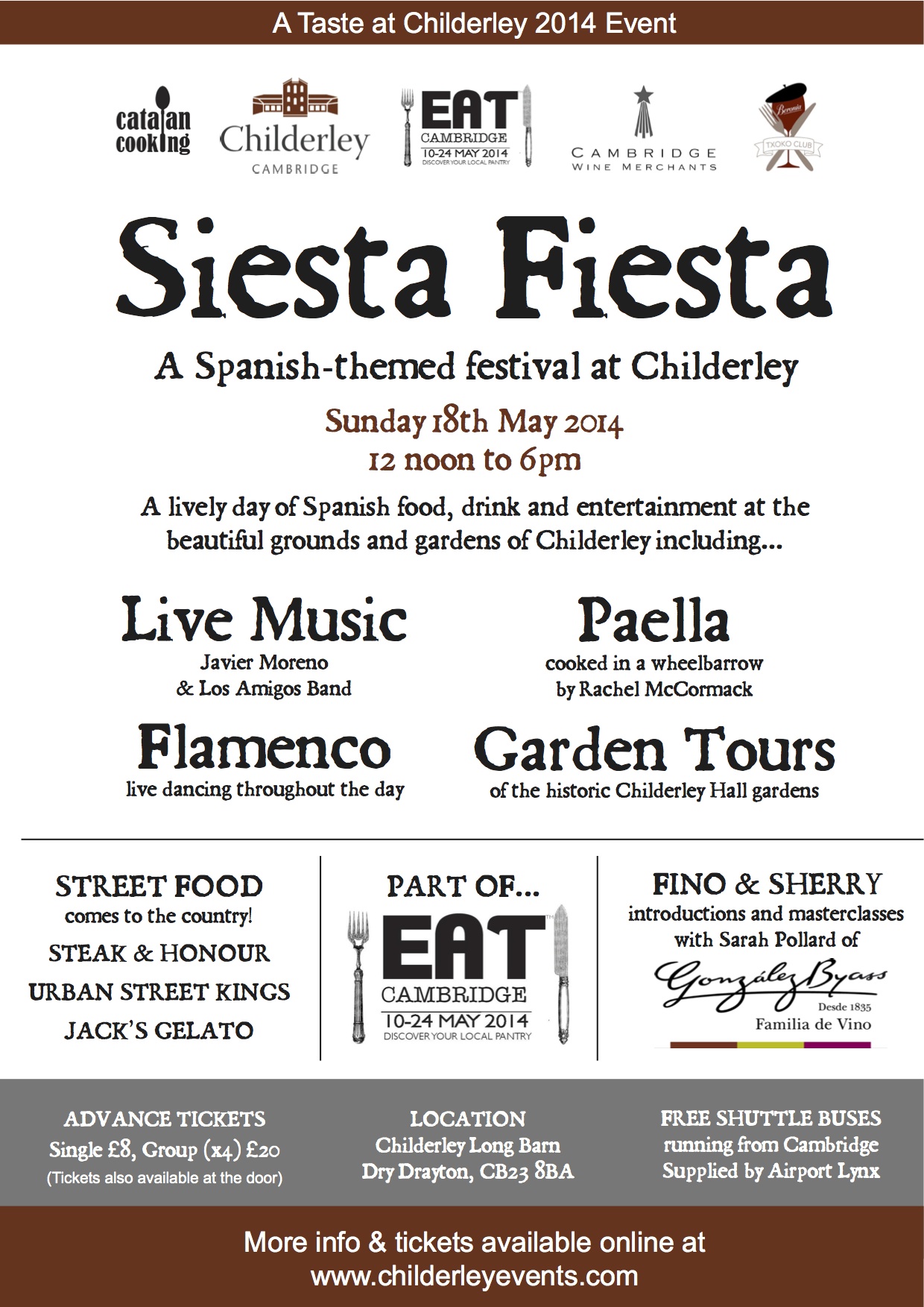 In partnership with Cambridge WIne Merchants, you are invited to enjoy the rich variety of authentic cuisine, wines, flamenco, and Fino, as Childerley Long Barn is transformed into a lively Spanish Fiesta for all the family.